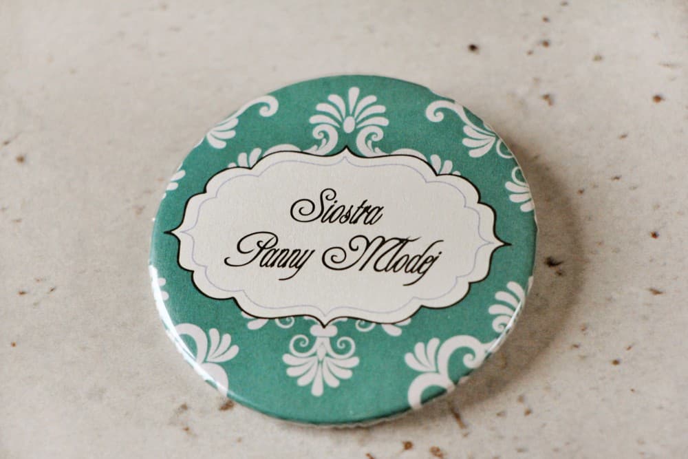 Suchen Sie nach einer Idee für Tischkarten, die nicht zwischen dem Geschirr untergehen? Setzen Sie auf Ansteckbuttons als Tischkarten! Sie können Buttons mit den Vor- und Nachnamen der Gäste bestellen und diese an jedem Gedeck platzieren. Eine solche Geste weist den Gästen nicht nur ihren Platz zu, sondern stellt auch ein erstes nettes Geschenk für sie dar. Nachdem sie ihren Platz gefunden haben, kann jeder den Button an der Kleidung befestigen, was ihn für den Rest des Abends zu einem praktischen Accessoire macht. Dies ist eine kreative und funktionale 2-in-1-Lösung, die sicherlich für ihren Einfallsreichtum und die Liebe zum Detail geschätzt wird – Aspekte, die für die Atmosphäre der gesamten Zeremonie so wichtig sind, wie Sie in unserem Blogartikel „Kleine große Dinge – Details, die die Atmosphäre einer Hochzeit schaffen“ nachlesen können.