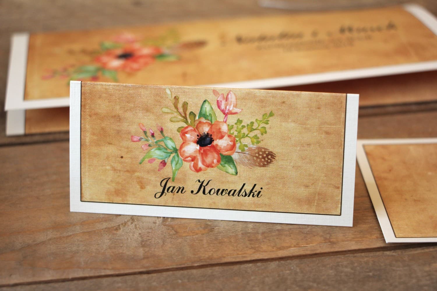 Tischkarten Hochzeit Karmelowe nr 2 – Platzkarten im Boho-Stil mit Blumen