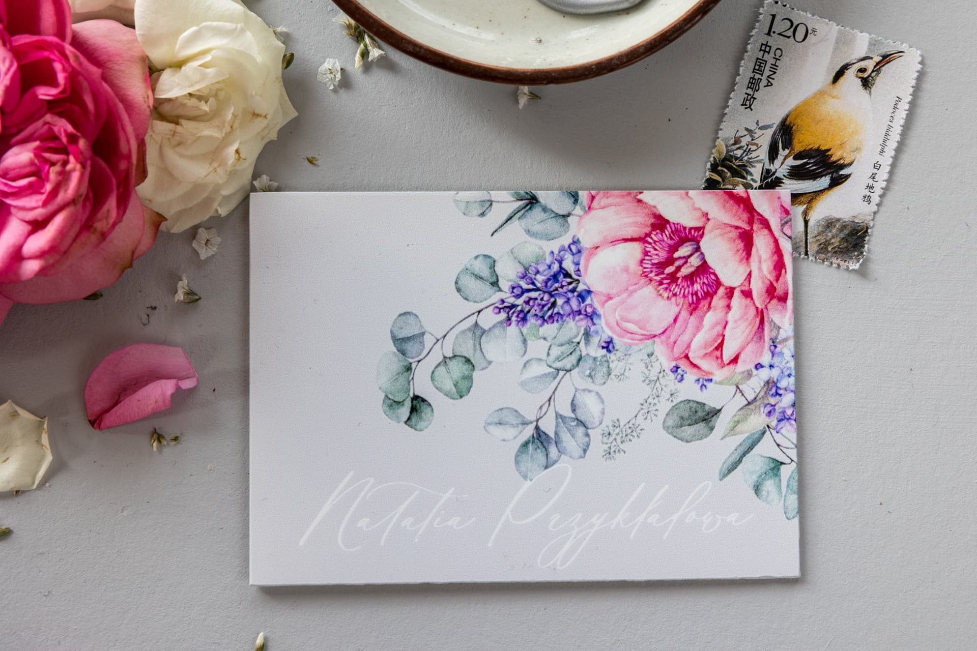 Glas-Tischkarten mit Pfingstrosen sind erst der Anfang. Die Kollektion Soft Nr. 7 wurde für Paare entworfen, die von einem perfekt abgestimmten visuellen Rahmen für ihren großen Tag träumen. Wir bieten eine ganze Reihe von Hochzeitsaccessoires im gleichen romantischen Stil an. Stellen Sie sich Hochzeitseinladungen auf Glas, Tischnummern, das Menü oder Gastgeschenke vor – alles mit dem gleichen Blumenmotiv. Diese Konsequenz schafft ein äußerst elegantes und professionelles Erscheinungsbild der gesamten Zeremonie, das Ihnen und Ihren Gästen lange in Erinnerung bleiben wird. Und wenn wir schon von Details sprechen, sollte man auch den Platz für die Hauptdarsteller des Abends nicht vergessen. Erfahren Sie in unserem Ratgeber, ob auch für das Brautpaar Tischkarten vorbereitet werden.