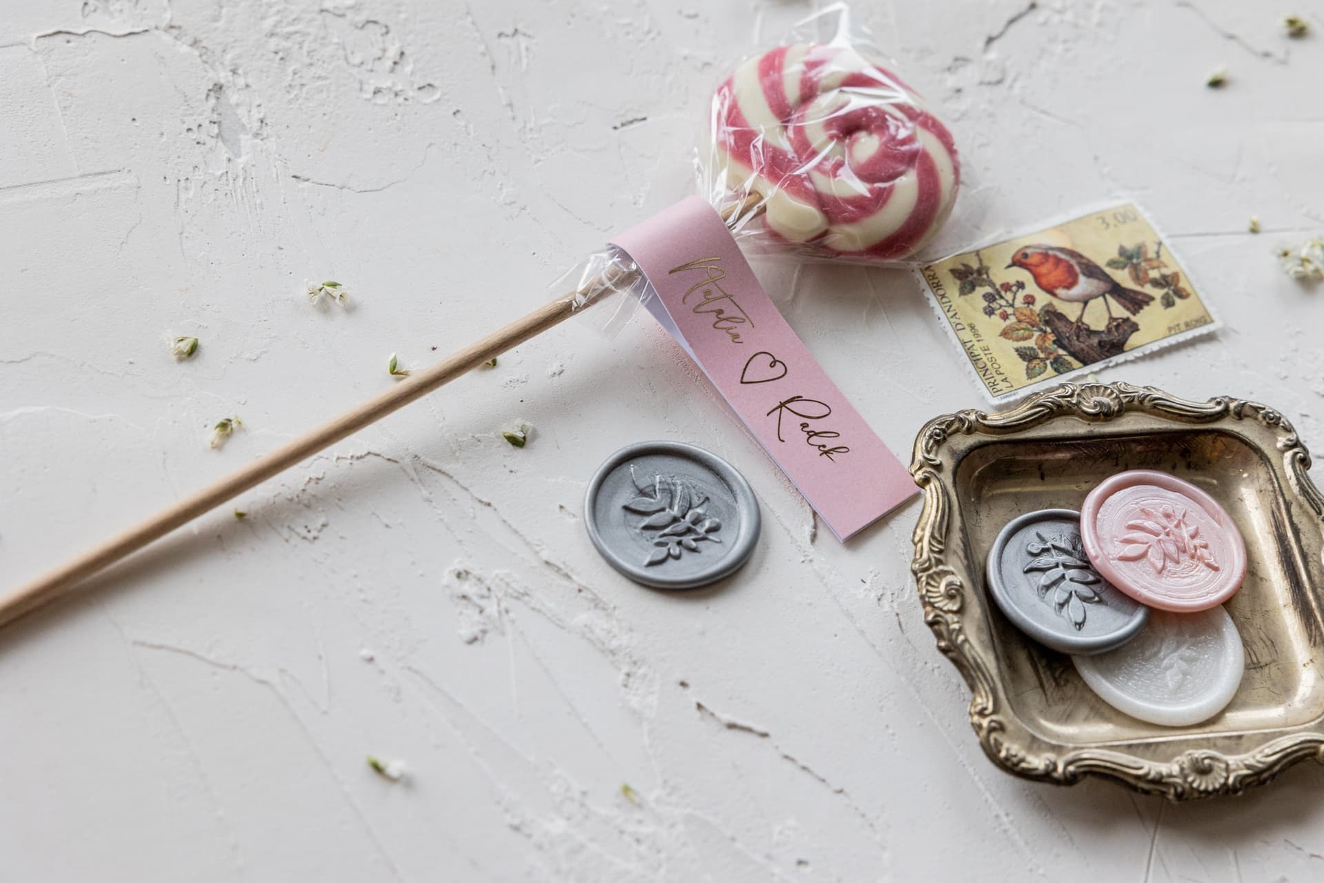 Suchen Sie nach besonderen Gastgeschenken für Ihre Hochzeit, die in Erinnerung bleiben? Unsere handgefertigten Lutscher sind ein Volltreffer. Jedes Exemplar aus unserer lokalen Manufaktur ist ein kleines Kunstwerk. Verziert mit einem personalisierten Anhänger in zartem Puderrosa und edler Goldprägung, sind sie ein Symbol der Dankbarkeit. Überraschen Sie Ihre Gäste mit einem süßen Präsent, das Ihre Tischdekoration perfekt ergänzt. Bestellen Sie jetzt und erhalten Sie einen Gratis-Entwurf nach Ihren Wünschen!