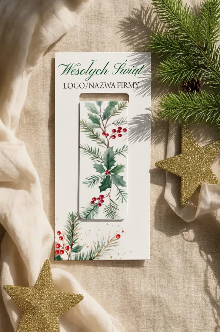 Sorgen Sie für ein konsistentes Erscheinungsbild Ihres Unternehmens in der Weihnachtszeit. Bei Amelia-Wedding.pl können wir für Sie die gesamte Business-Papeterie im gleichen Stil wie das Lesezeichen entwerfen. Stellen Sie sich elegante Weihnachtskarten, Geschenkanhänger oder Dankeskarten für Partner vor – alles in einem harmonischen grafischen Konzept. Ein solches Set wirkt nicht nur professionell, sondern stärkt auch die positive Bindung an Ihre Marke. Die Mindestbestellmenge beträgt nur 20 Stück, wodurch unser Angebot auch für kleinere Unternehmen ideal geeignet ist.