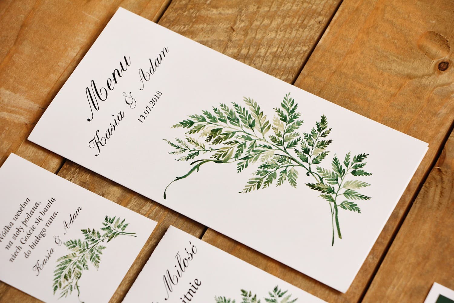 Tischkarten Hochzeit Kalia Nr. 1 – Botanische Platzkarten mit Farnblatt