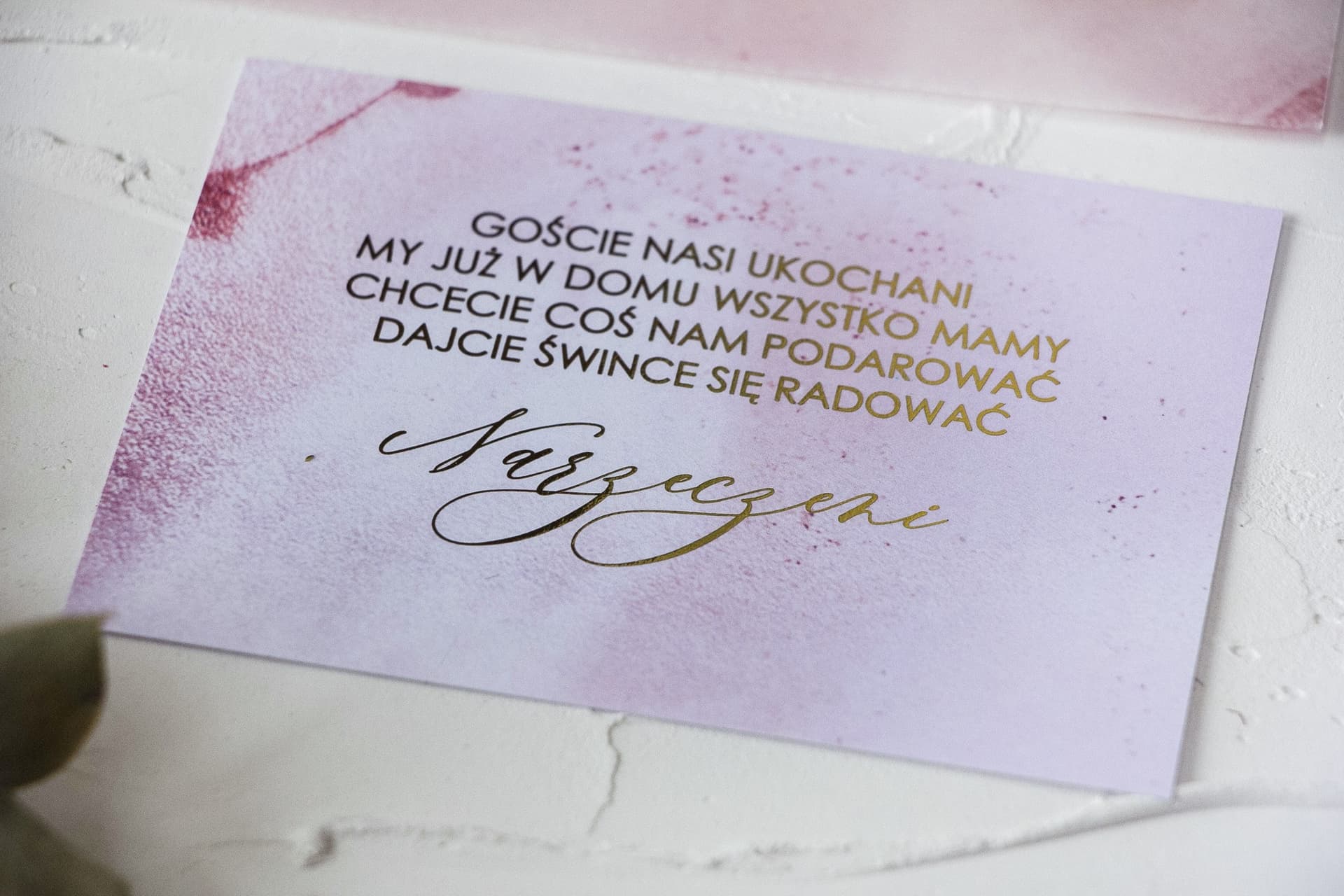 Elegante Beilegekarten für Ihre Hochzeitseinladungen aus der Kollektion Marmurowe sind der ideale Weg, um Ihren Gästen zusätzliche Informationen in luxuriösem Stil zu übermitteln. Die Kombination aus modernem rosa Marmormuster, echter Vergoldung und samtigem Papier hinterlässt einen unvergesslichen Eindruck. Diese Einladungskarten eignen sich perfekt für Geschenkreime, als RSVP-Karte oder für Übernachtungshinweise. Unterstreichen Sie den einzigartigen Charakter Ihrer Feier mit der Papeterie von Amelia-Wedding.pl. Bestellen Sie mit gratis Design und Personalisierung, um sie perfekt an Ihre Einladungen und das Hochzeitsthema anzupassen!