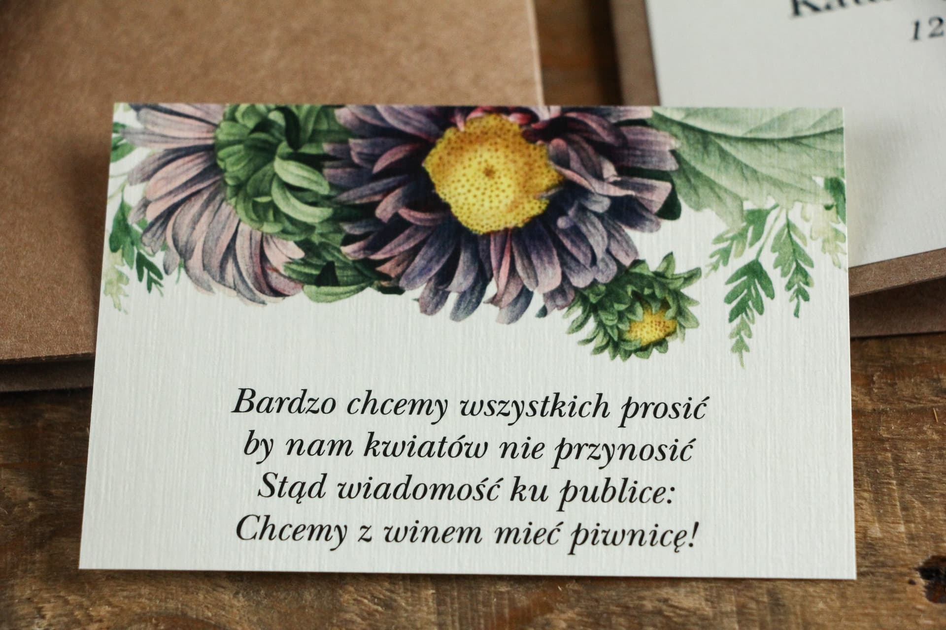 Zaproszenia Ślubne Kraft nr 3 – Fioletowe Astry w Folderze