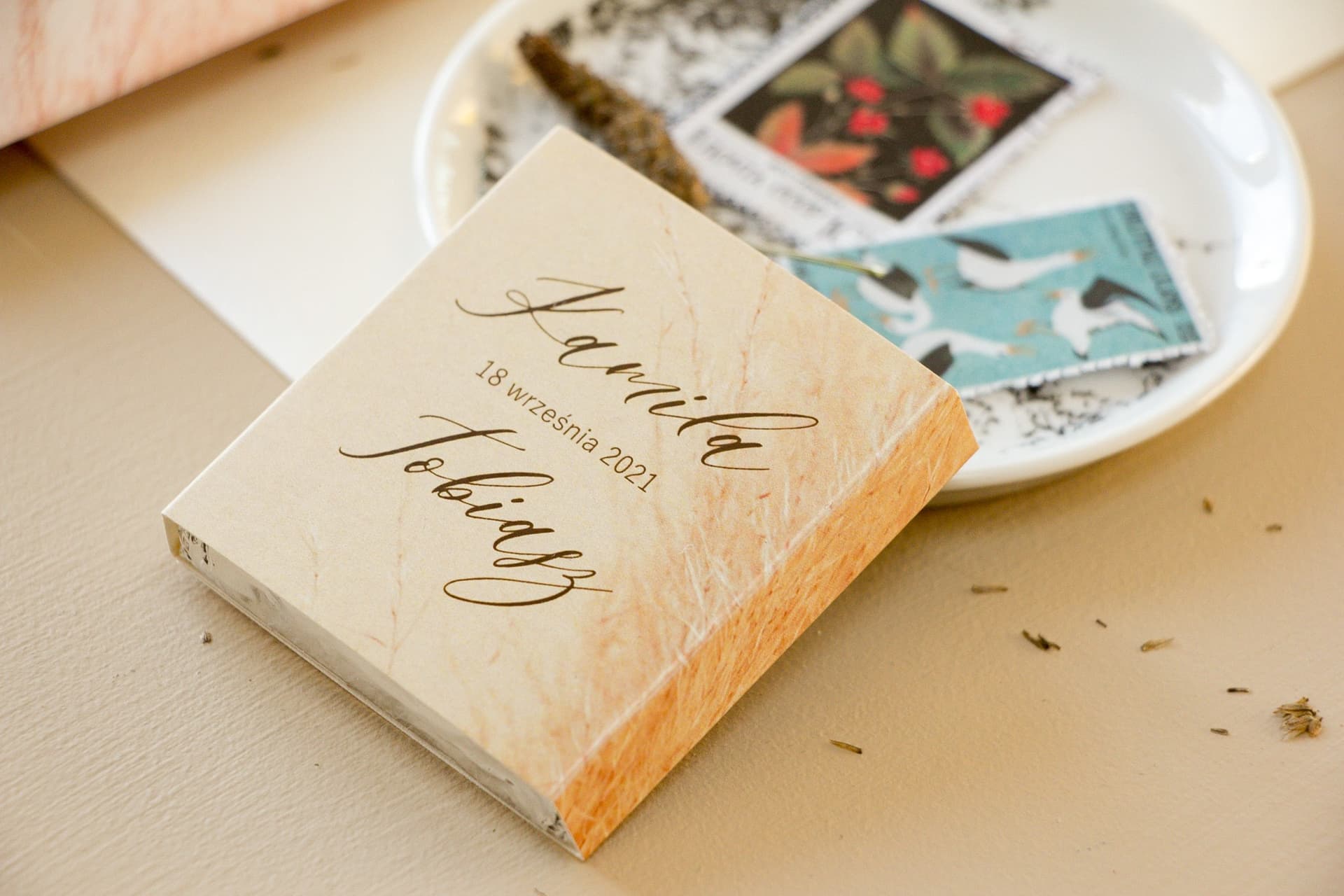 Czekoladki Opal nr 1 to element większej całości. Oferujemy całą gamę papeterii ślubnej z tym samym motywem trawy pampasowej. Wyobraźcie sobie spójną aranżację stołów, gdzie obok talerzy leżą eleganckie winietki, na środku stoją numery stołów, a całość dopełniają nasze piękne czekoladki. Taka konsekwencja stylistyczna tworzy profesjonalny i przemyślany wizerunek uroczystości, pokazując, że zadbaliście o każdy, nawet najmniejszy szczegół. To najlepszy sposób, by Waszych gości wprowadzić w niezwykły klimat i sprawić, by poczuli się naprawdę wyjątkowo, co jest esencją poradnika jak tworzyć niezapomniane podziękowania.