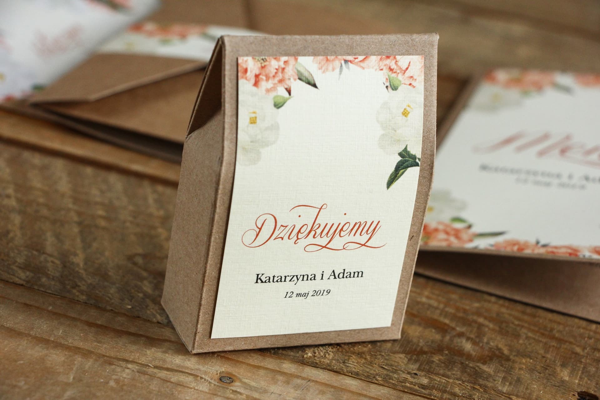 Pudełeczka z piwoniami na słodycze | Rustykalne podziękowania dla gości weselnych | Kraft nr 2