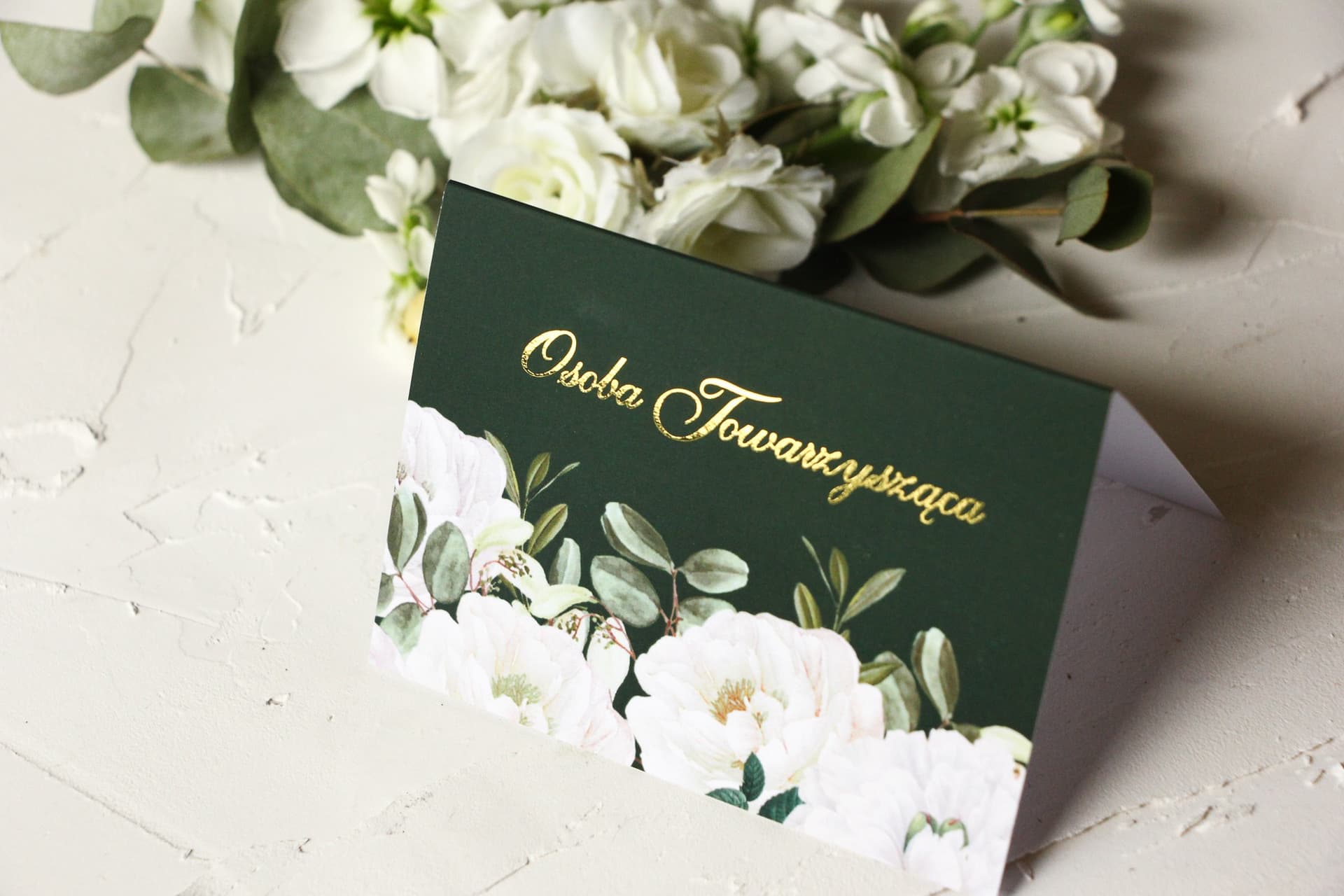 Eleganckie winietki ślubne z kolekcji Szafirowe to kwintesencja stylu i dbałości o detale na Waszym weselu. Uroczy motyw białych róż i piwonii z eukaliptusem, podkreślony luksusowym złoceniem, doda stołom wyjątkowego blasku. Każda winietka, wykonana na grubym, satynowym papierze, jest nie tylko praktycznym elementem organizacji, ale przede wszystkim piękną dekoracją. Wybierzcie pełną personalizację z darmowym projektem i stwórzcie niezapomnianą atmosferę dla swoich gości. Zamówcie i zachwyćcie wszystkich wyrafinowanym gustem!