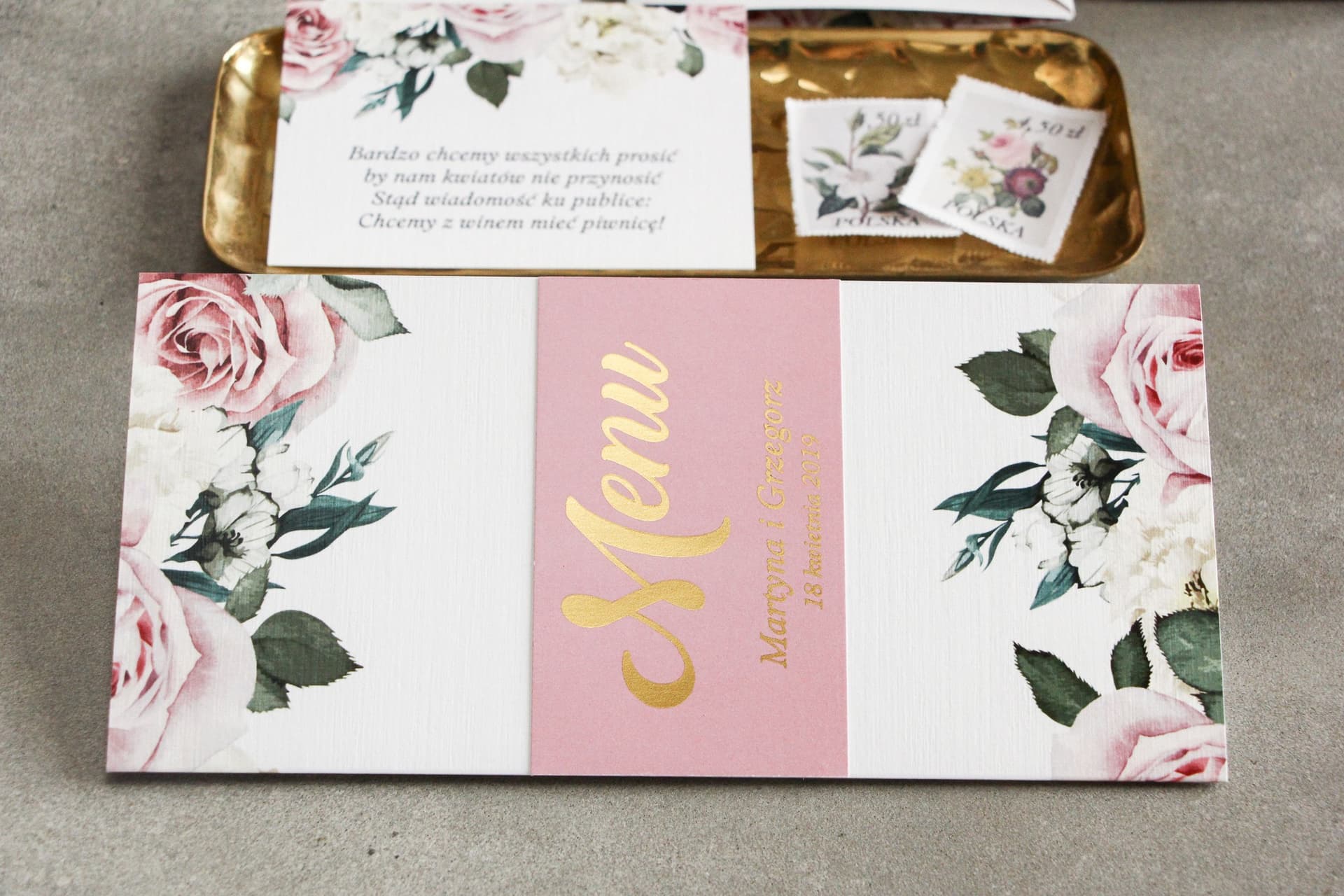 Próbki Zaproszeń Różane Złocone, Zestaw Papeterii | Próbki Zaproszeń Ślubnych Glamour | Lotaro nr 4