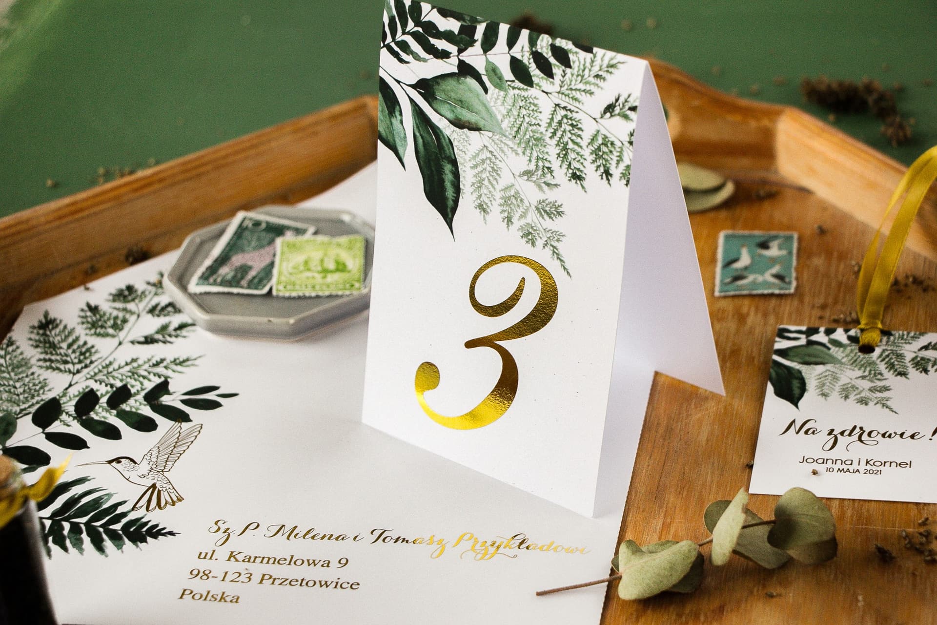 Próbki Zaproszeń Ślubnych z Paprocią | Zestaw Próbek Papeterii Botanicznej | Pattern nr 5