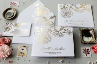 Tak. Stosujemy technikę hot-stampingu, czyli wgrzewania na gorąco specjalnej, metalicznej folii. Nie jest to zwykły nadruk w kolorze złotym, lecz luksusowe uszlachetnienie, które nadaje zaproszeniom piękny połysk i elegancką, lekko wklęsłą fakturę, co podkreśla ich prestiżowy charakter.