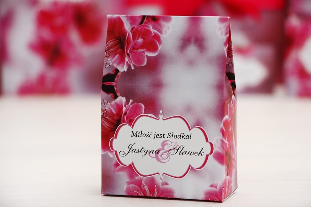 Różowe Pudełeczka z Karmelkami, Motyw Kwiat Wiśni | Podziękowania dla Gości Weselnych | Felicja nr 12