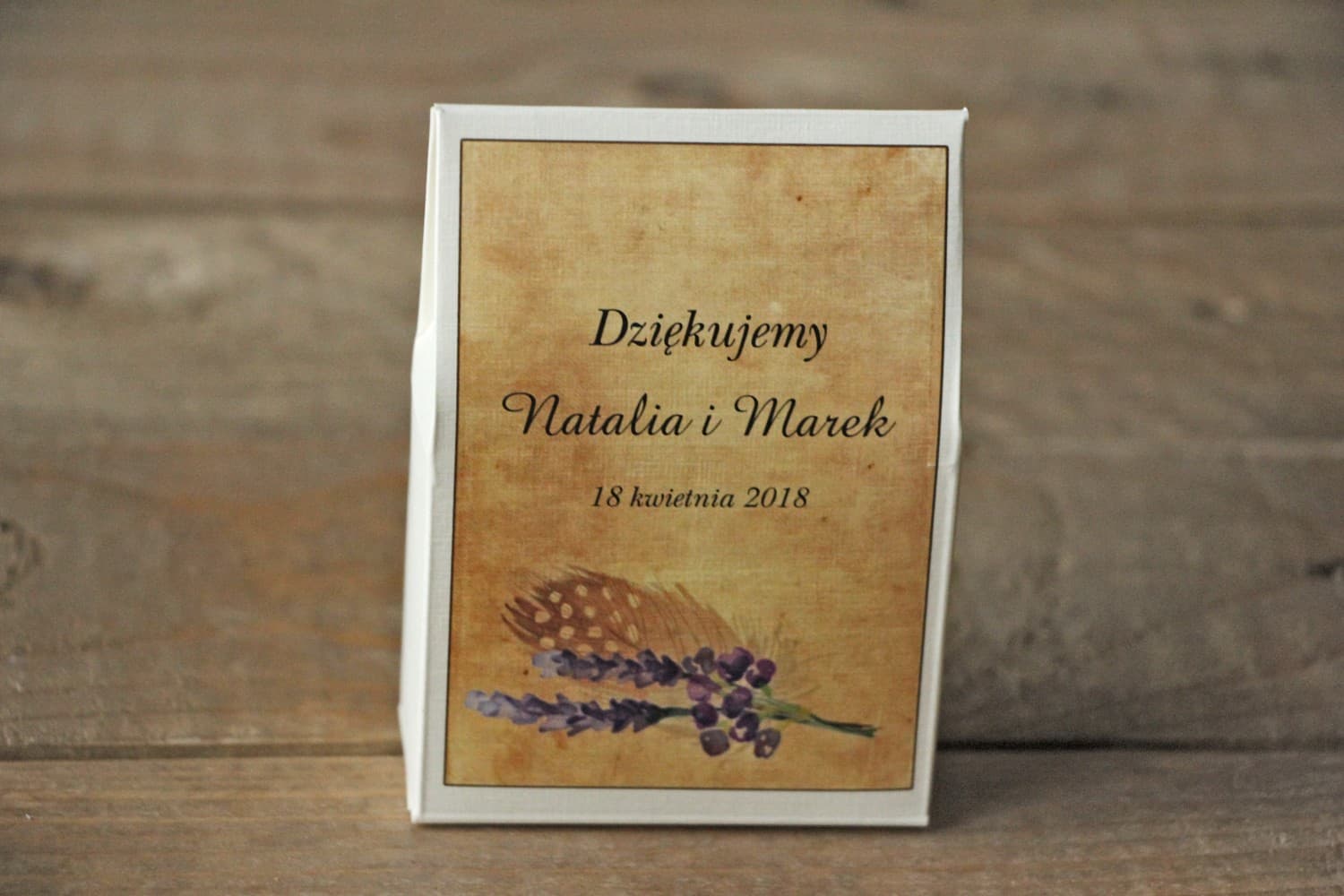 Szukacie wyjątkowych podziękowań dla gości weselnych? Nasze personalizowane pudełeczka w stylu rustykalnym boho z motywem piórka to strzał w dziesiątkę. Każde pudełeczko, wykonane z fakturowanego papieru, skrywa w sobie słodkie karmelki, stanowiąc uroczą pamiątkę dla Waszych bliskich. Wyraźcie wdzięczność w niepowtarzalnym stylu i zachwyćcie swoich gości. Spersonalizujcie projekt za darmo i zamówcie już dziś, aby dopełnić Waszą ceremonię o ten wyjątkowy detal!