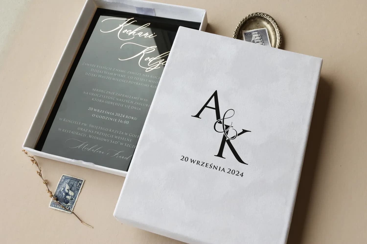 Najpiękniejszy klejnot wymaga odpowiedniej oprawy. Nasze szklane podziękowania wręczane są w przepięknym, ręcznie wykonanym pudełku, pokrytym miękkim w dotyku welurem. Już sam moment wręczania takiego prezentu staje się ceremonią. Pudełko nie tylko chroni szklaną taflę, ale jest integralną częścią podarunku. Na jego wieczku możemy umieścić dowolny, spersonalizowany nadruk – może to być grafika z motywem przewodnim wesela, Wasze imiona i data, czy specjalna dedykacja. Wewnątrz znajduje się delikatna tasiemka, która ułatwia eleganckie wyjęcie statuetki. To rozwiązanie typu „wszystko w jednym”, które zachwyca dbałością o każdy, nawet najmniejszy szczegół.