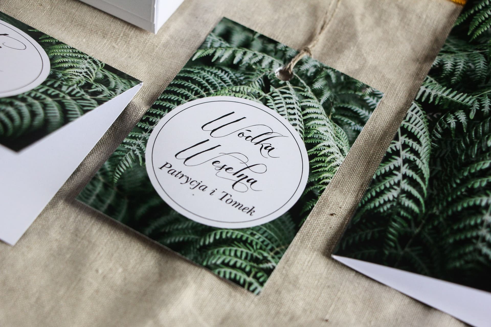 Każda Para Młoda marzy o tym, by dzień ich ślubu był dopracowany w najmniejszym szczególe. To właśnie te detale tworzą niezapomnianą atmosferę i opowiadają historię Waszej miłości. Nasze zawieszki na wódkę weselną z kolekcji Botanik nr 1 to kwintesencja elegancji inspirowanej naturą. Delikatny, a zarazem wyrazisty motyw liści paproci naniesiony na wysokiej jakości papier to idealny wybór dla par ceniących sobie styl botaniczny, rustykalny czy boho. Te małe dzieła sztuki zamienią zwykłe butelki w spójny element dekoracji stołu, zachwycając Waszych gości i podkreślając wyjątkowy charakter uroczystości.