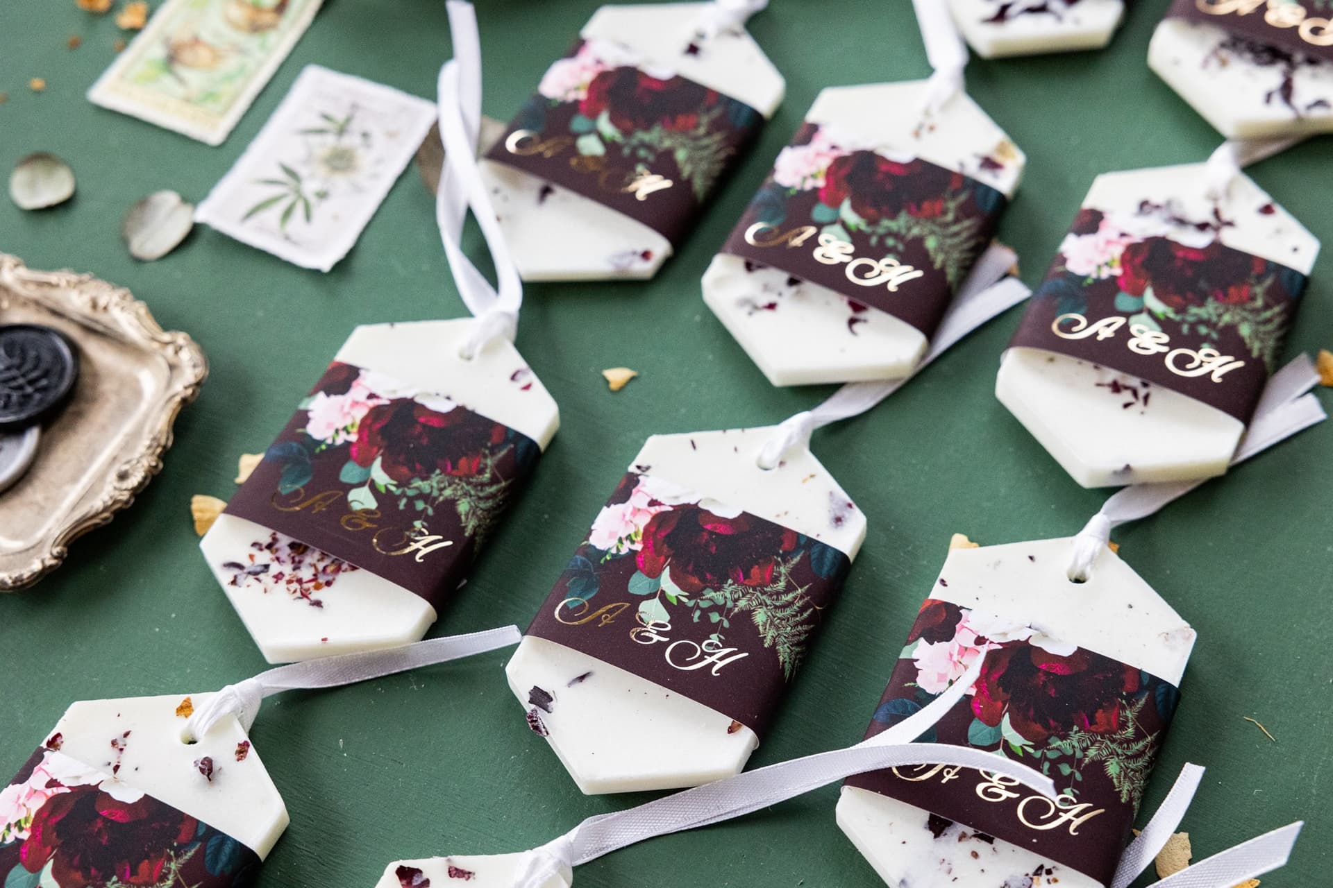Wręczając gościom sojową zawieszkę zapachową, dajecie im coś więcej niż pamiątkę – dajecie im praktyczny przedmiot, który znajdzie zastosowanie w ich codziennym życiu. Goście mogą umieścić zawieszkę w szafie, garderobie, komodzie z bielizną, a nawet w samochodzie. Za każdym razem, gdy otworzą szafę, otoczy ich piękny zapach, przywołujący wspomnienia Waszego ślubu. A gdy po kilku miesiącach aromat stanie się mniej intensywny, zawieszkę można pokruszyć i roztopić w kominku do wosków zapachowych, wypełniając całe pomieszczenie kwiatową wonią.
