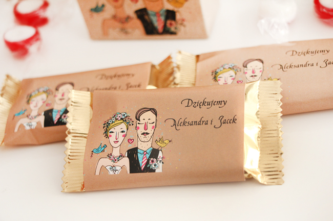 Drobne, słodkie upominki dla Gości ze zdjęciem Pary Młodej...