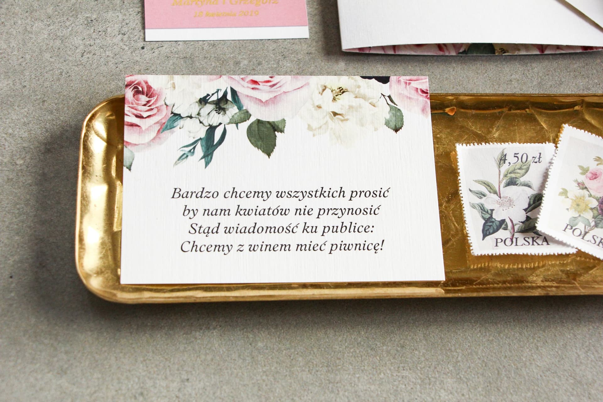 W Amelia-Wedding.pl wierzymy, że papeteria ślubna powinna być tak unikalna, jak Wasza miłość. Dlatego oferujemy w pełni darmowy projekt i nielimitowaną liczbę poprawek do każdego zamówienia. Nasi graficy z przyjemnością dopasują tekst na bilecikach do Waszych potrzeb, niezależnie od tego, czy ma to być wierszyk o prezentach, prośba o RSVP, czy informacje o dojeździe. Co więcej, motyw Lotaro z różowymi różami i piwoniami może stać się motywem przewodnim całej Waszej papeterii. Oferujemy również zaproszenia ślubne, winietki, zawieszki na alkohol, numery stołów i podziękowania dla gości z tym samym, romantycznym wzorem. To gwarancja stworzenia niezwykle spójnej i eleganckiej oprawy wizualnej Waszego ślubu i wesela. Zastanawiasz się, jak napisać proste zaproszenia na ślub? Nasz blog dostarczy Ci wielu cennych wskazówek.