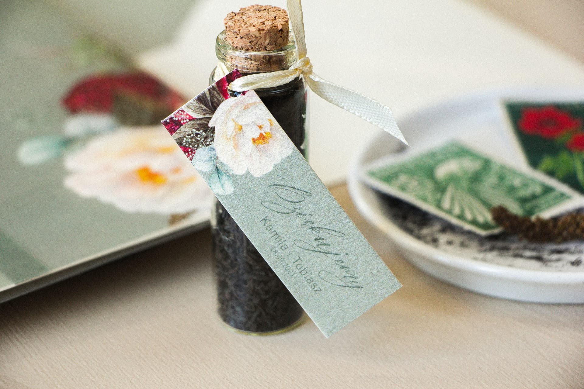 Wybór odpowiednich podziękowań może być wyzwaniem, jednak herbata w fiolce to rozwiązanie, które łączy w sobie wszystko, co najlepsze. Jest to prezent zarówno piękny, jak i praktyczny. W przeciwieństwie do figurek czy innych pamiątek, które często kurzą się na półkach, aromatyczna herbata zostanie z przyjemnością zaparzona przez Waszych gości, przywołując wspomnienia z dnia Waszego ślubu. To symboliczny gest, który mówi: „Dziękujemy za Wasze ciepło i obecność, ogrzejcie się teraz filiżanką pysznej herbaty”. To także upominek uniwersalny, który przypadnie do gustu osobom w każdym wieku. Jeśli chcecie dowiedzieć się więcej o tym, jak podziękować gościom, zapraszamy na naszego bloga: "Jak podziękować za obecność na weselu?".