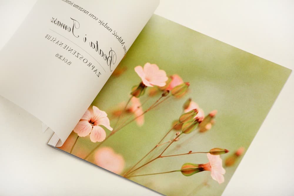 Kalka to jeden z najgorętszych trendów w świecie designu ślubnego. Jej delikatna, mleczna przezroczystość dodaje zaproszeniom lekkości, tajemniczości i niezwykle nowoczesnego wyglądu. W modelu Elegant nr 29 kalka pełni rolę subtelnej osłony, na której nadrukowany jest przepiękny motyw różowych, polnych kwiatów na tle zieleni. Tworzy to efekt trójwymiarowości i głębi, sprawiając, że grafika wydaje się unosić w powietrzu. To idealny wybór dla par, które poszukują czegoś więcej niż standardowe zaproszenia – to zapowiedź ślubu w stylu boho, rustykalnym, a także nowoczesnym i romantycznym.