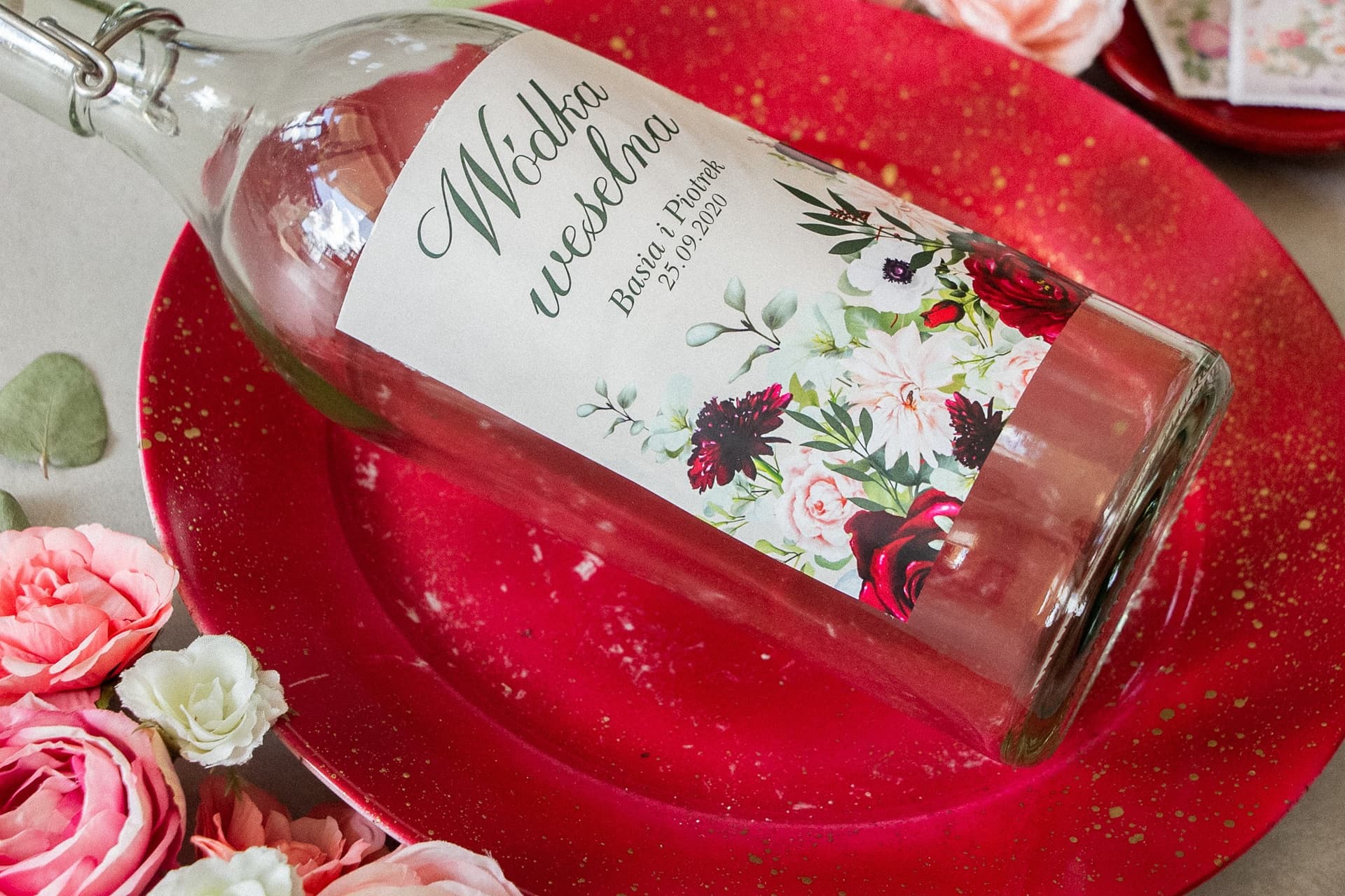 Każda Para Młoda marzy o tym, by dzień ich ślubu był dopracowany w najdrobniejszych szczegółach. To właśnie detale tworzą niezapomnianą atmosferę i pokazują gościom, jak wiele serca włożono w przygotowania. Jednym z takich elementów, które potrafią całkowicie odmienić wygląd weselnych stołów, są personalizowane etykiety na butelki z alkoholem. Prezentujemy Państwu wyjątkowe, samoprzylepne etykiety z kolekcji Korani nr 4 – kwintesencję romantycznego stylu i elegancji, która zachwyci wszystkich biesiadników.