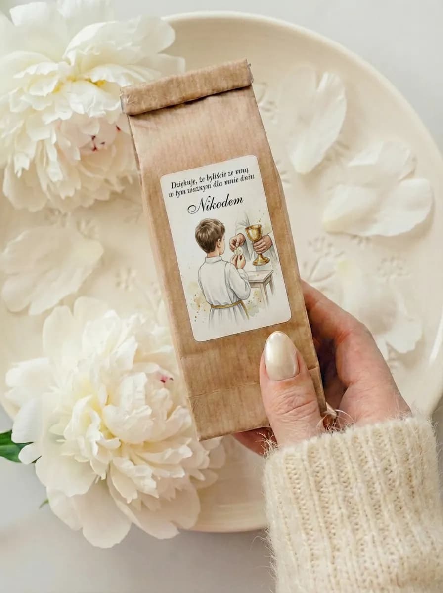 Dzięki temu podziękowania komunijne w formie herbaty nie są jedynie estetycznym dodatkiem, lecz praktycznym prezentem, który wraca we wspomnieniach do dnia uroczystości.