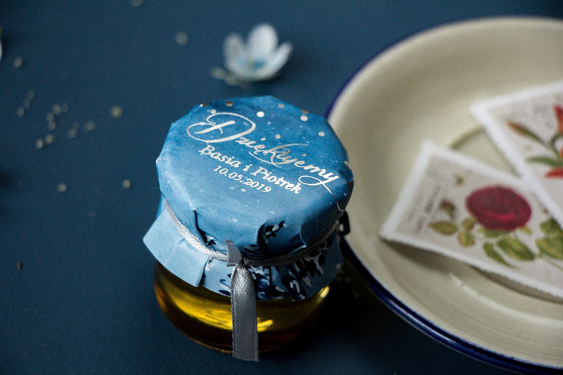 Szukacie oryginalnych podziękowań dla gości w stylu glamour? Nasze personalizowane miodki w słoiczkach to strzał w dziesiątkę! Każdy słoiczek zawiera 50g pysznego, polskiego miodu wielokwiatowego. Uwagę przykuwa elegancki kapturek ze srebrnymi kropeczkami oraz mieniący się, personalizowany napis. To drobny upominek, który na długo pozostanie w pamięci Waszych bliskich. Wyraźcie wdzięczność w słodkim i stylowym wydaniu, idealnie dopasowanym do Waszej uroczystości. Zamówcie i stwórzcie niezapomnianą pamiątkę!
