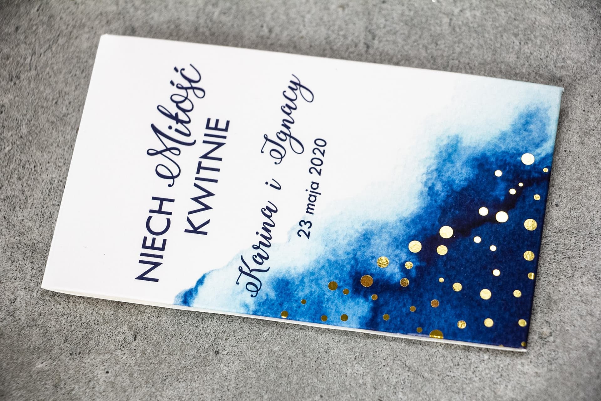 Chociaż nasiona niezapominajki są idealnym upominkiem weselnym, ich urok i symbolika doskonale sprawdzają się również przy innych okazjach. Planujecie Pierwszą Komunię Świętą, Chrzest, a może elegancki jubileusz? Granatowo-złote torebeczki z personalizowanym napisem będą stanowić piękną i stosowną pamiątkę dla gości. Co więcej, styl Bakarto to cała gama możliwości. Możemy stworzyć dla Was w tym samym stylu wszystkie niezbędne dodatki: od zaproszeń ślubnych, przez winietki, zawieszki na alkohol, po plany stołów i numery na stoły. Taka spójność stylistyczna zachwyci gości i stworzy harmonijną, luksusową oprawę Waszej uroczystości, wpisując się w najnowsze trendy ślubne na 2025 rok.