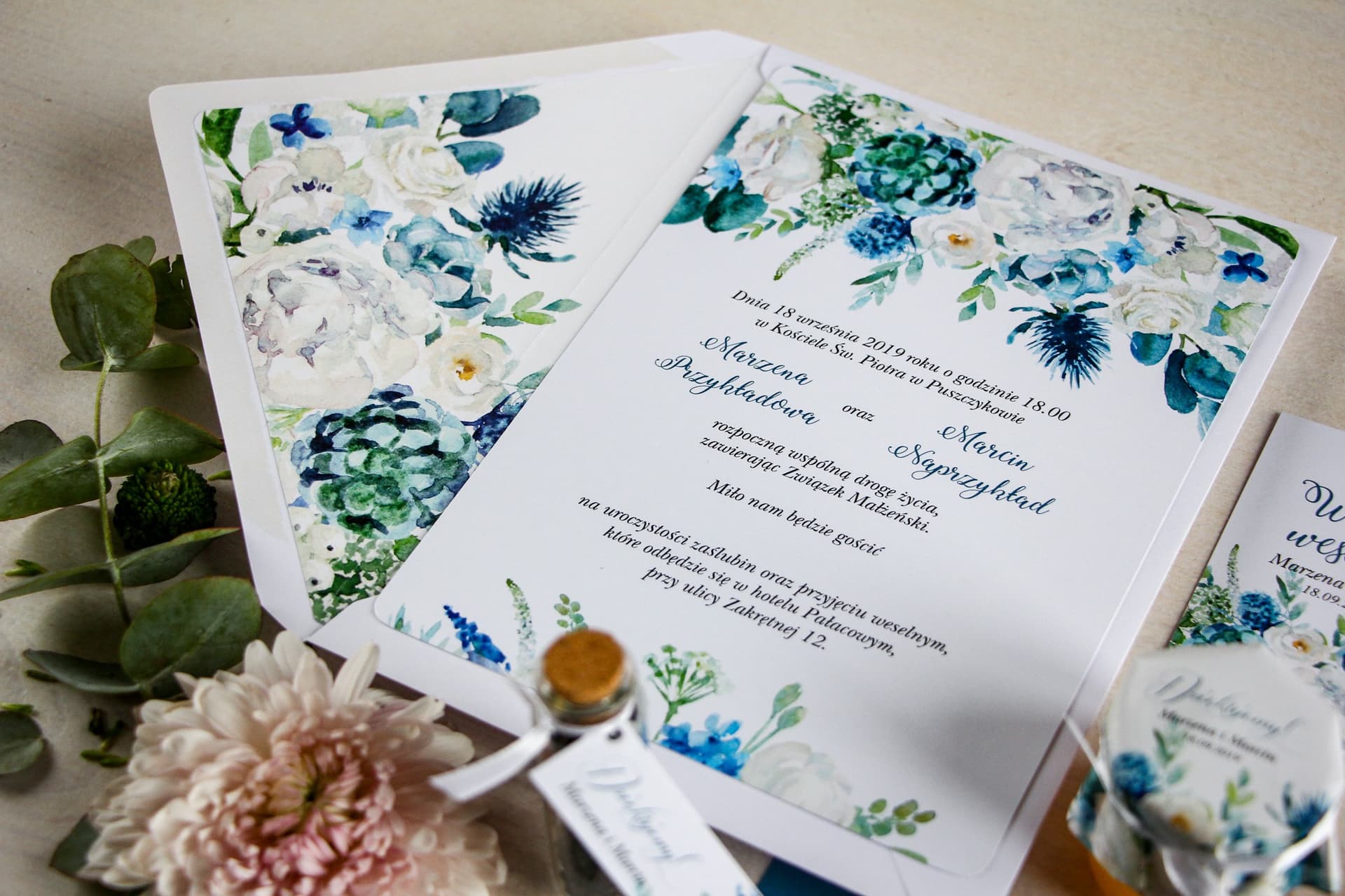 Skorzystaj z naszego kreatora online lub pomocy profesjonalnego grafika. Stwórz idealne niebieskie zaproszenia ślubne z białymi różami w kilka chwil. Pamiętaj, projekt i nielimitowane poprawki są u nas zawsze za darmo!