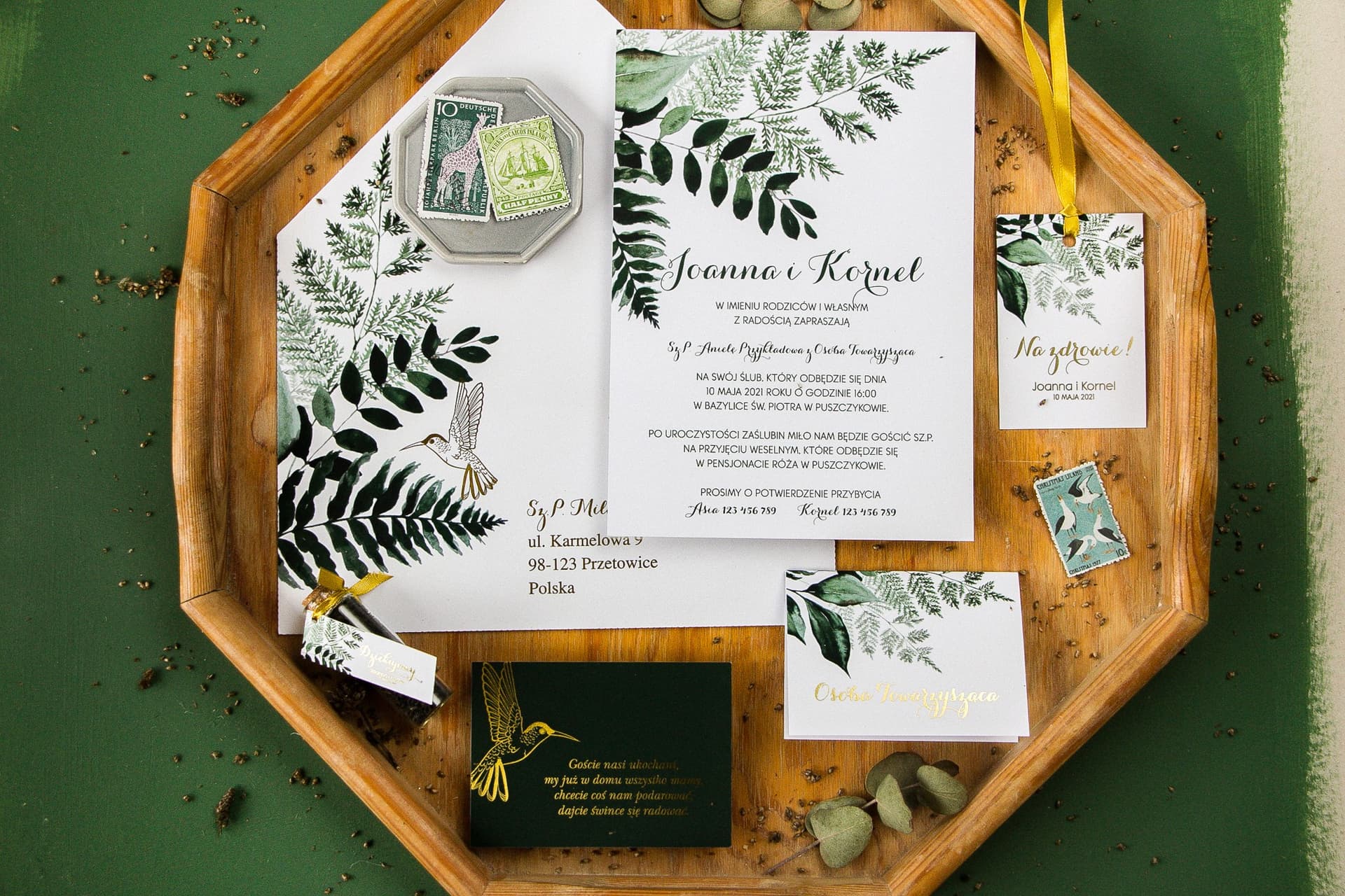 Zamówienie zestawu próbnego to rozsądny i niezwykle ważny krok w planowaniu ślubu. Pozwala on wyeliminować ryzyko i niepewność. Dzięki fizycznemu produktowi w dłoniach możesz osobiście ocenić gramaturę i fakturę papieru, sprawdzić, jak botaniczna grafika z motywem paproci i złotymi akcentami prezentuje się w rzeczywistości, a także przekonać się o precyzji i jakości naszego druku. To gwarancja, że finalne zamówienie będzie w 100% zgodne z Twoimi oczekiwaniami. Nie musisz polegać na wyobraźni – możesz podjąć świadomą decyzję opartą na realnym doświadczeniu.