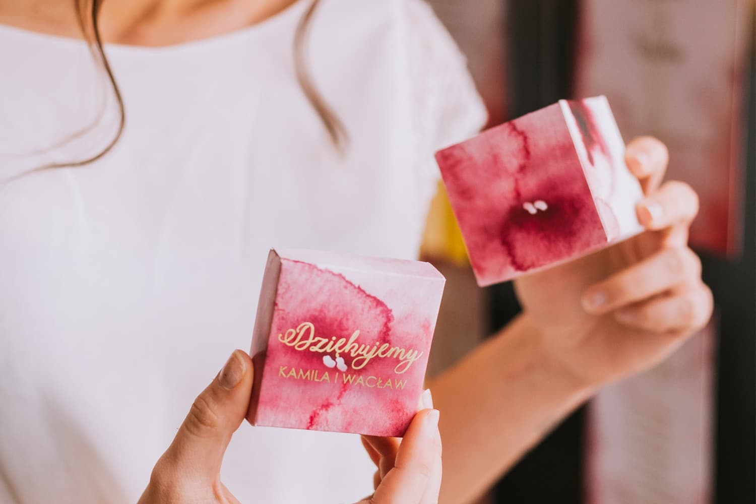 Idealne wymiary 6x6x6 cm, gotowe do wręczenia gościom.
