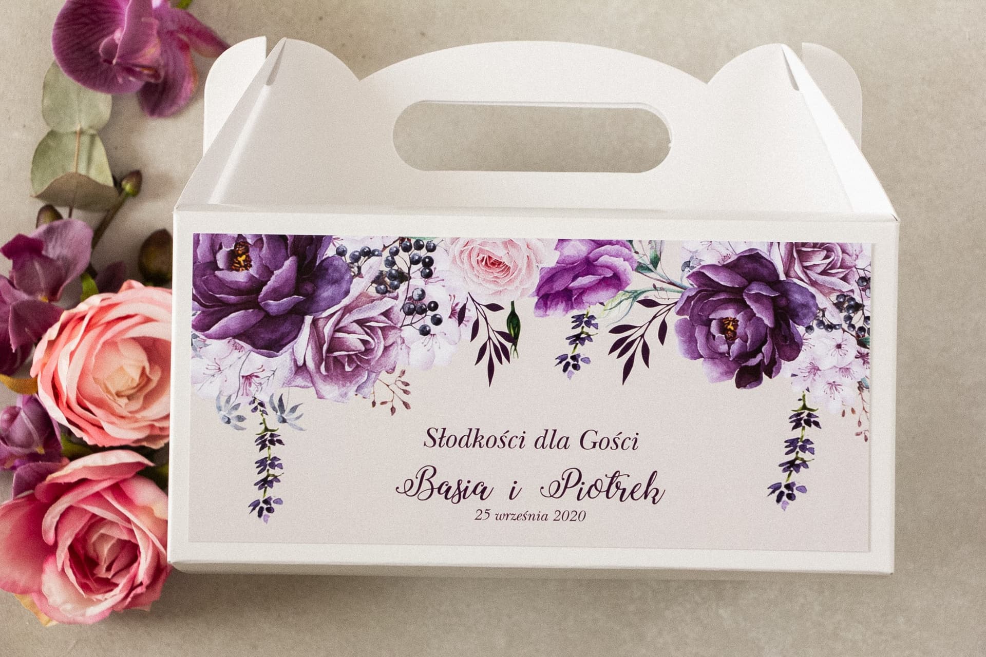 Prostokątne pudełka na ciasto weselne z subtelnym motywem lawendy to wymarzony sposób, by podziękować gościom za przybycie. Wykonane ze sztywnego, atestowanego kartonu, gwarantują bezpieczeństwo słodkości i elegancki wygląd. Wygodna rączka ułatwia transport, a personalizowany nadruk z Waszymi imionami i datą ślubu doda całości osobistego charakteru. Skorzystaj z opcji darmowego projektu i nieograniczonych poprawek, aby stworzyć idealne opakowania. Zamów i zachwyć swoich bliskich pięknym i praktycznym upominkiem!