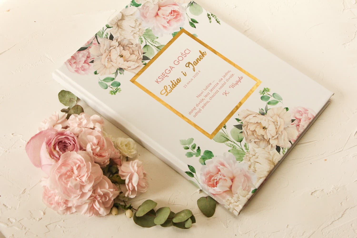 Perfekcyjna uroczystość to taka, w której wszystkie elementy tworzą harmonijną całość. Księga gości Avril Nr 3 jest częścią większej kolekcji papeterii ślubnej. Oznacza to, że możecie zamówić w tym samym, kwiatowo-złotym stylu również zaproszenia ślubne, winietki na stoły, zawieszki na alkohol, numery stołów czy podziękowania dla gości. Taka spójność wizualna zachwyci Waszych bliskich i podkreśli Wasz zmysł estetyczny. Planując dekoracje, warto pamiętać, że diabeł tkwi w szczegółach, a dobrze dobrana papeteria jest kropką nad 'i' w aranżacji sali. Więcej na ten temat i o tym jak ważne są detale, przeczytacie w naszym artykule o współpracy z fotografem ślubnym, który uchwyci te wszystkie piękne szczegóły.