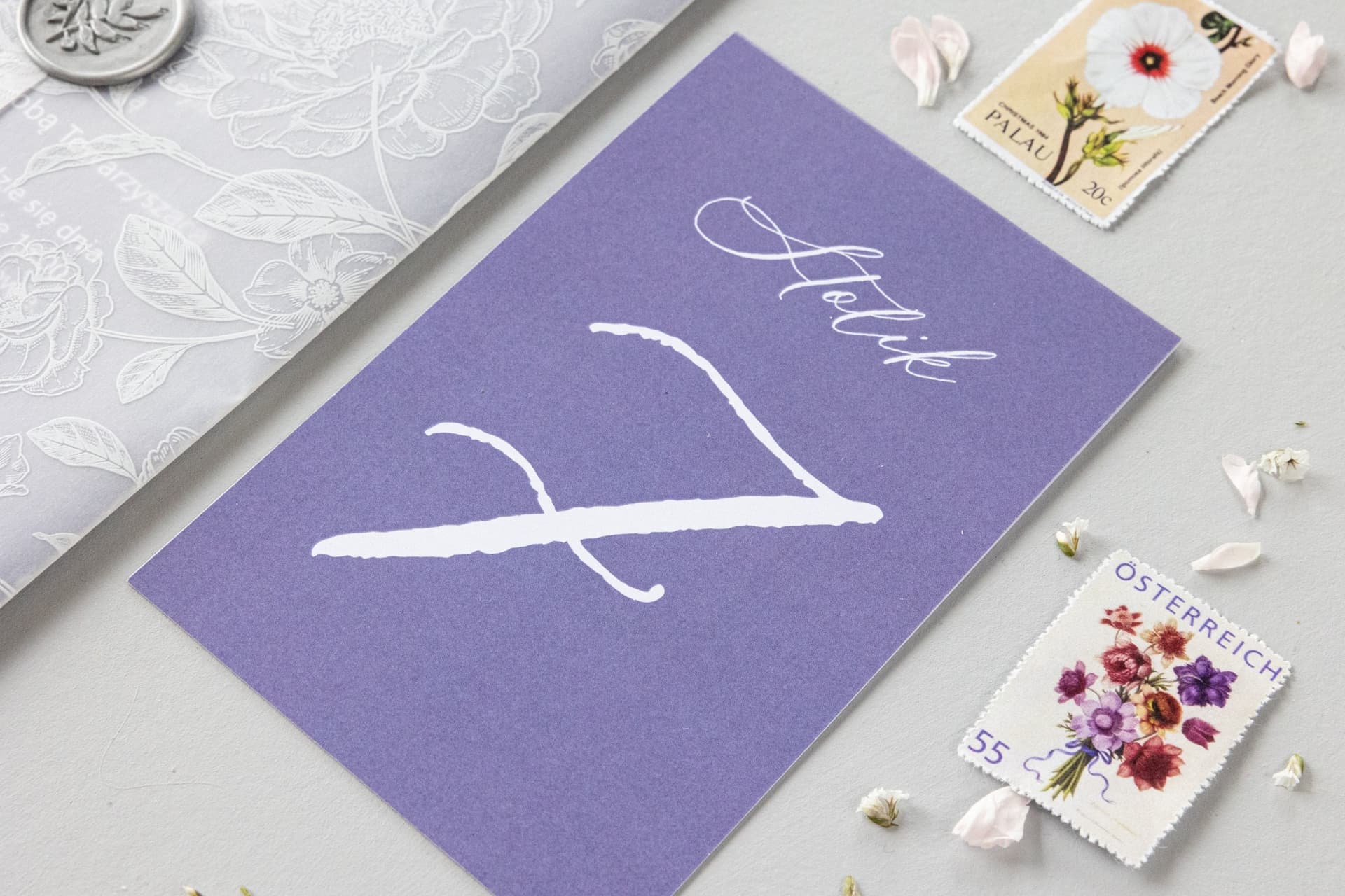 Nasze lawendowe numerki na stół zostały zaprojektowane z myślą o parach, które cenią sobie wysoką jakość i spójność stylistyczną. Każdy numerek drukowany jest na sztywnym, gładkim papierze satynowym o gramaturze 280g, co gwarantuje jego stabilność i nienaganny wygląd przez całe przyjęcie. Delikatna grafika z motywem lawendy w odcieniach fioletu jest synonimem klasy i dobrego smaku. Standardowy, składany format o wymiarach około 10,5 x 14,8 cm (zbliżony do A6) jest doskonale widoczny dla gości, a jednocześnie nie przytłacza innych elementów dekoracyjnych na stole, takich jak kompozycje kwiatowe czy świece.