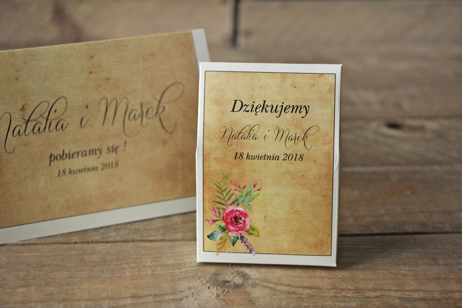 Szukacie wyjątkowych podziękowań dla gości weselnych? Nasze rustykalne pudełeczka w kształcie uroczego domku to strzał w dziesiątkę! Wykonane z eleganckiego papieru o fakturze lnu i ozdobione subtelnym motywem kwiatowym w stylu boho, kryją w sobie słodką niespodziankę w postaci karmelków. To nie tylko słodki upominek, ale i piękna dekoracja stołu. Spersonalizujcie je za darmo i podarujcie bliskim coś wyjątkowego prosto od serca.