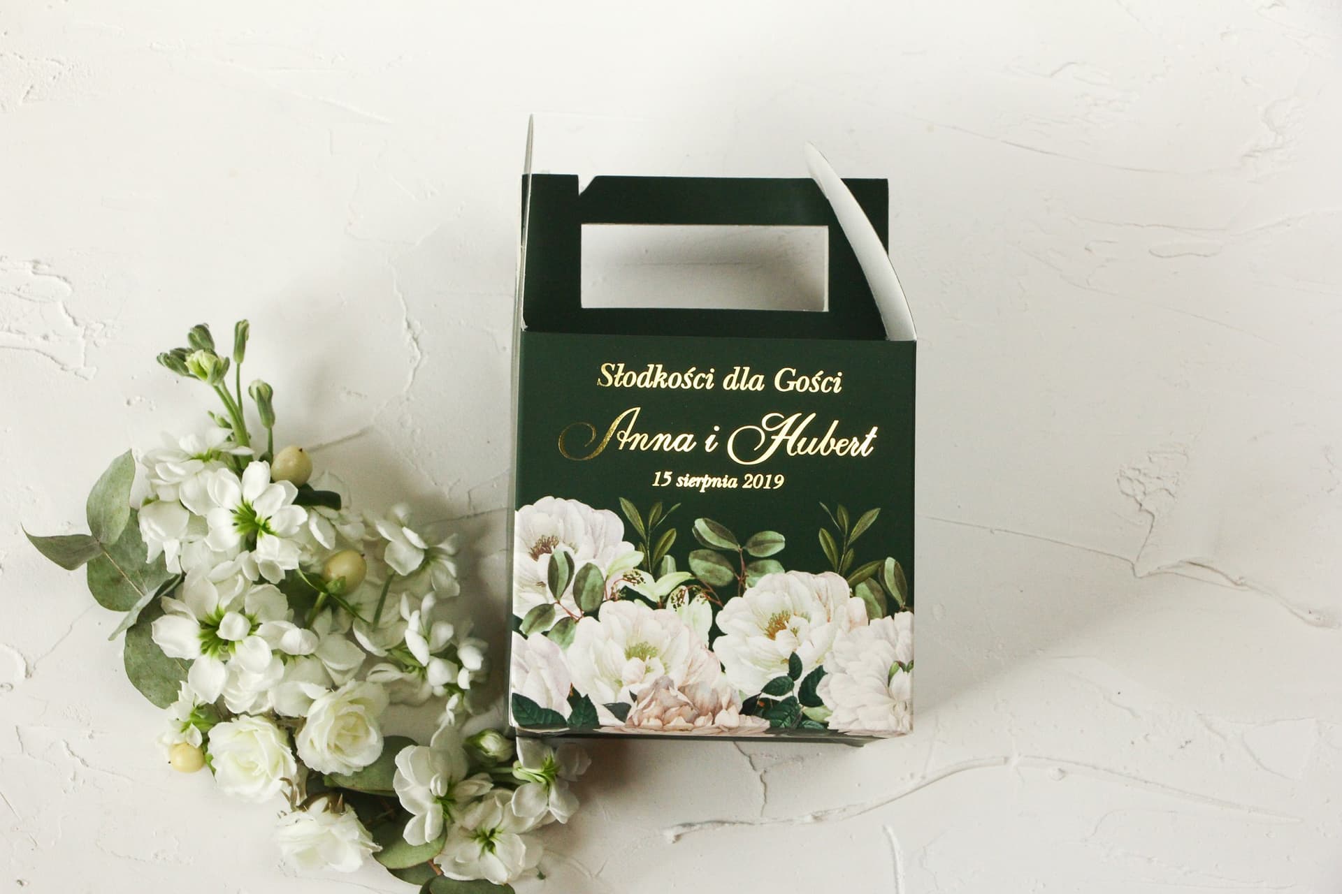 Szukasz eleganckiego sposobu, by podziękować gościom? Nasze personalizowane pudełko na ciasto weselne z kolekcji Szafirowe nr 3 to strzał w dziesiątkę. Zdobione subtelnym motywem białych róż, piwonii i eukaliptusa oraz złoconymi napisami, stanowi piękną oprawę dla słodkich upominków. Wykonane z grubego, atestowanego papieru, gwarantuje bezpieczeństwo i styl. Podaruj swoim bliskim kawałek weselnego tortu w wyjątkowym opakowaniu. Zamów projekt już dziś i zachwyć swoich gości!