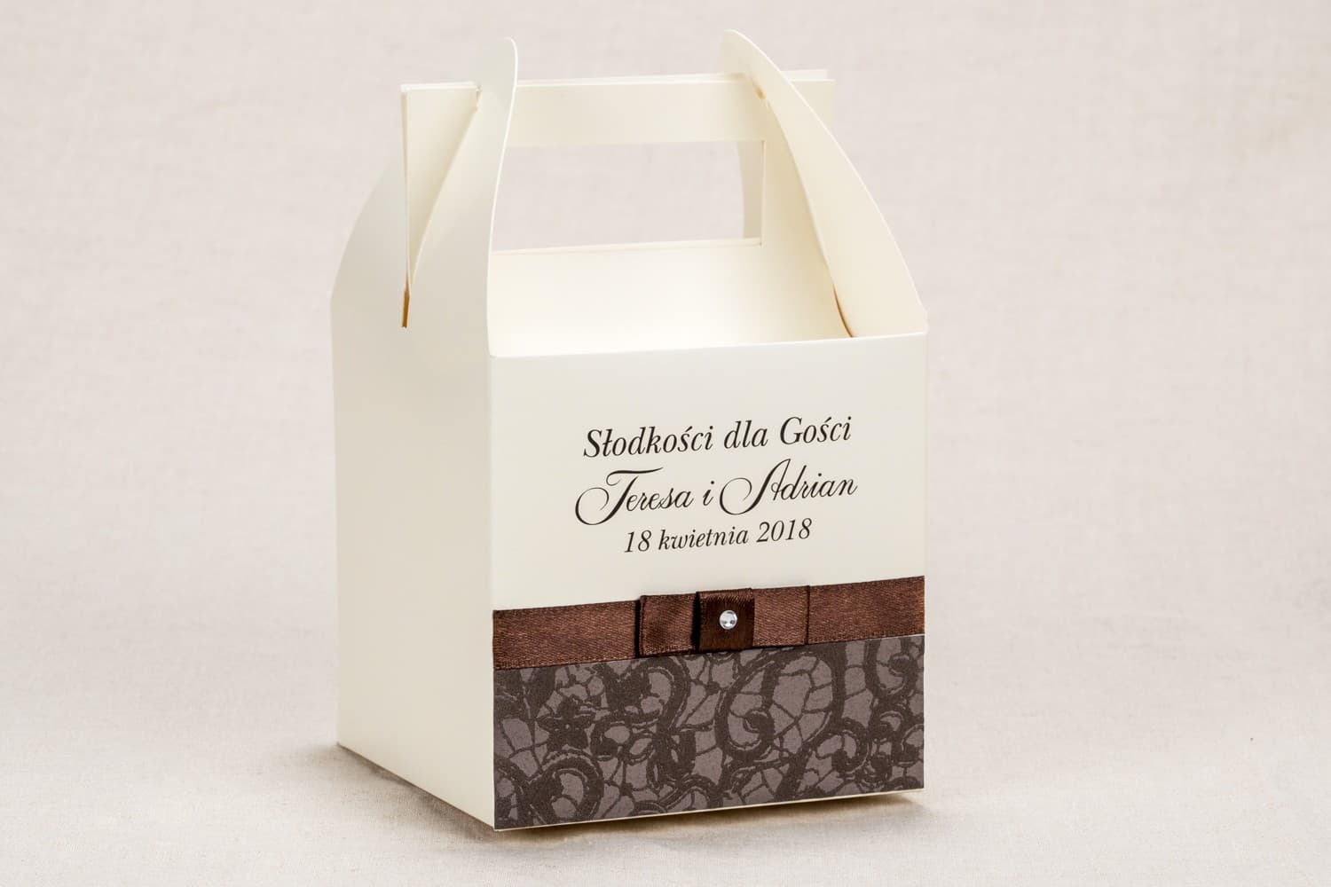 Motyw brązowej koronki z kolekcji Klaris może pojawić się nie tylko na pudełkach. W ofercie Amelia-Wedding.pl znajdziecie również zaproszenia ślubne, winietki na stół, zawieszki na alkohol oraz inne dodatki z tym samym wzorem. Stworzenie tak spójnego zestawu papeterii świadczy o dbałości o detale i z pewnością zostanie docenione przez Waszych gości, niezależnie od tego czy organizujecie wielkie wesele, czy kameralne przyjęcie weselne w domu.